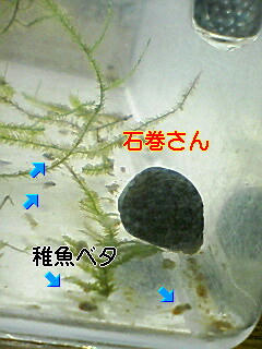 早速水合わせをして石巻さんを稚魚ベタ水槽に入れた。