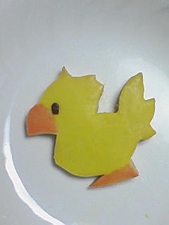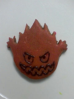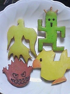 ということで、ボム、チョコボ、ケツァクウァトル、サボテンダーの4つをアイシングしました。赤・青・黄の3色が入っている市販の粉砂糖を使用。なかなか上手い具合に色をつけられたと思います。目や口はチョコペンで描き描き。我ながら、チョコボとサボテンダーがかなり可愛いと自画自賛。